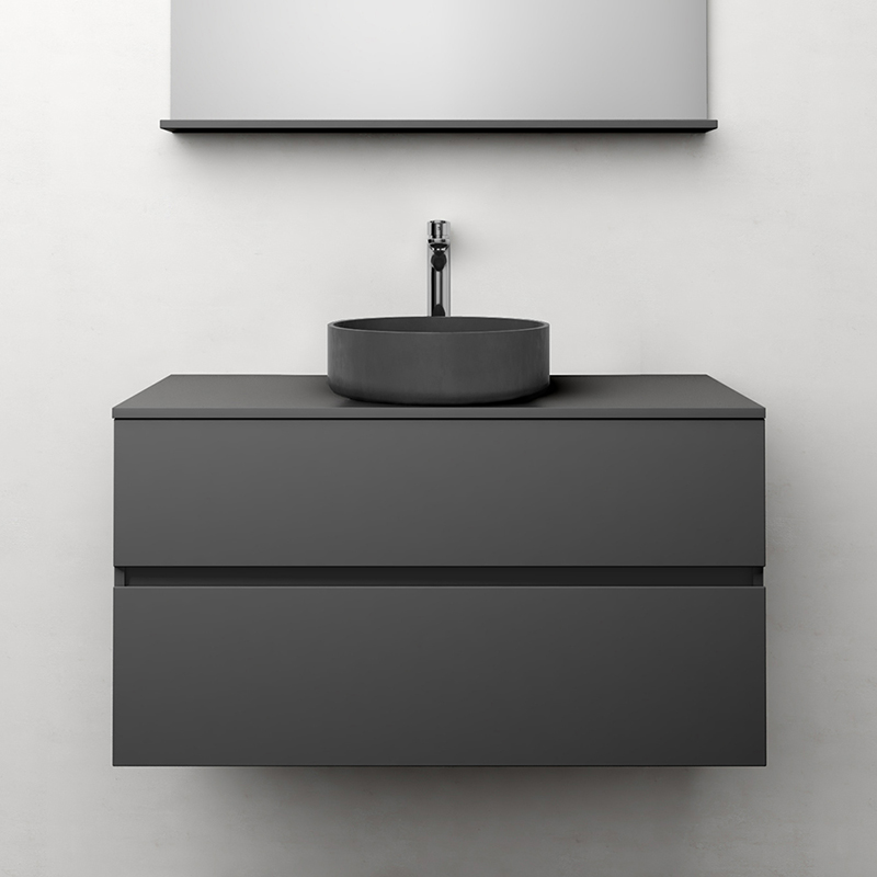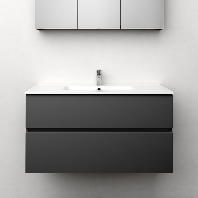 Himmel er et stilig servantskap med myk lukkende skuffer med integrerte håndtak. Skuffene kan trekkes helt ut og har metallkanter. En avtakbar matte i bunnen av skuffene holder ting på plass og gjør rengjøringen enklere. Den øverste skuffen har en U-formet design som gir plass til en vannlås. Skapet er forberedt for både gulv- og veggavløp og har justerbare monteringsbraketter. Tilgjengelig i matt hvit og antrasitt. Vannlås må kjøpes separat.