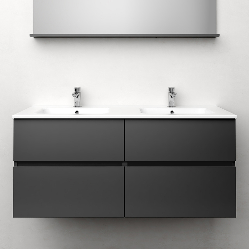Himmel er et stilig servantskap med myk lukkende skuffer med integrerte håndtak. Skuffene kan trekkes helt ut og har metallkanter. En avtakbar matte i bunnen av skuffene holder ting på plass og gjør rengjøringen enklere. Den øverste skuffen har en U-formet design som gir plass til en vannlås. Skapet er forberedt for både gulv- og veggavløp og har justerbare monteringsbraketter. Tilgjengelig i matt hvit og antrasitt. Vannlås må kjøpes separat.