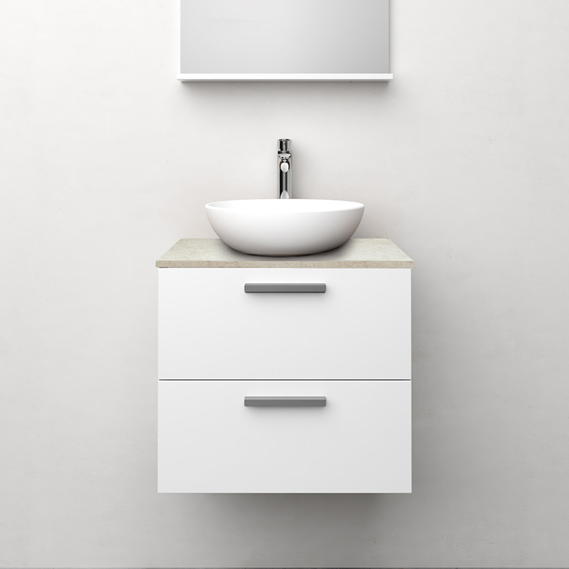 Myktlukkende skuffer med fullt uttrekk og skuffesider av metall. En uttakbar matte i bunnen på skuffene gjør at tingene ligger på plass og gjør det enklere ved rengjøring. Den øverste skuffen har en U-form som gir rom for vannlås. Møbelet er klargjort for både gulv- og veggavløp og har justerbare opphengsbeslag. Kjøp till håndtak.