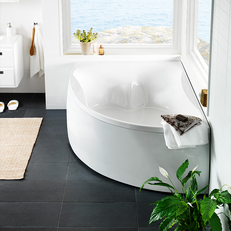 Et litt større badekar uten massasjesystem med god plass til to personer. Den asymmetriske formen gjør badekaret enkelt å plassere, og det er tilgjengelig for høyre- og venstreplassering. Kjøp til front.