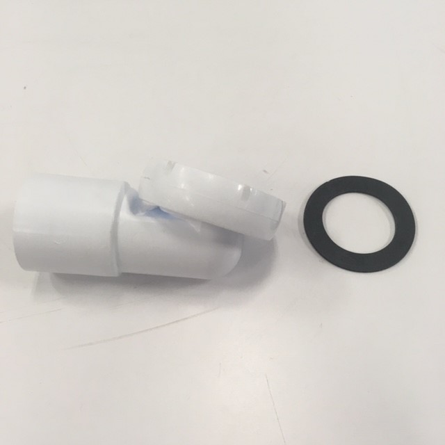 90 graders avloppsvinkel till massagebadkar. Passar 32mm Ø rör. Passar till avloppssatserna 80000612 och 80002571.