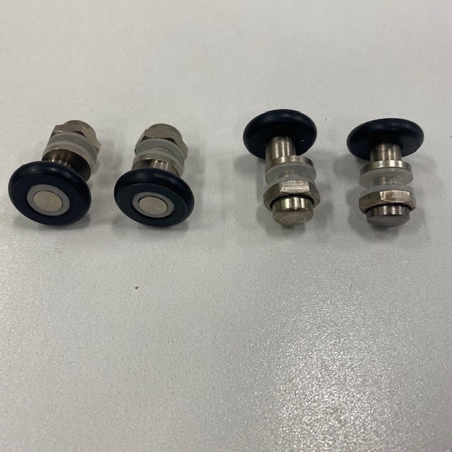 Ersättningshjul till äldre duschkabiner och Steamer. Passar bl.a. S-steamer, Iceland och äldre modeller av Glaciär. Hjuldiameter 23mm, Hjultjocklek 5,8mm och passar hål i glas på 9,5mm-11mm ø.